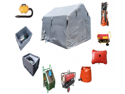 对受到有毒物质污染的人体进行喷淋洗消,也可做临时会议室、指挥部、紧急救护场所等。全套面积30㎡。包括洗消帐篷、电动充排气泵和气瓶充气装置(多口同时充气)、洗消供水泵、洗消排污泵、洗消水加热器、洗消液均混罐、暖风发生器、喷淋系统、洗消废水回收袋、空气升温炉、增压罐、移动高压洗消泵等,各部件之间采用模块化装配与设计,可以快速的组建整套系统,所有管路配备统一快接接头,可临时相互转换,组建时间不超过10分钟。