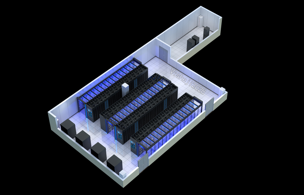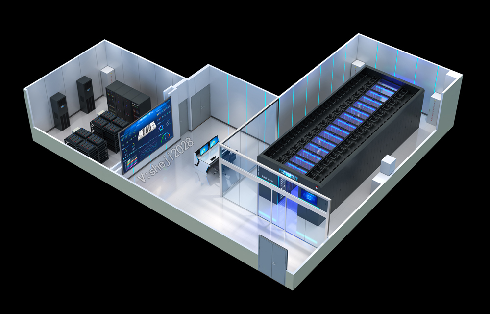 某港口运输保障中心通信中心机房俯视角效果图设计;