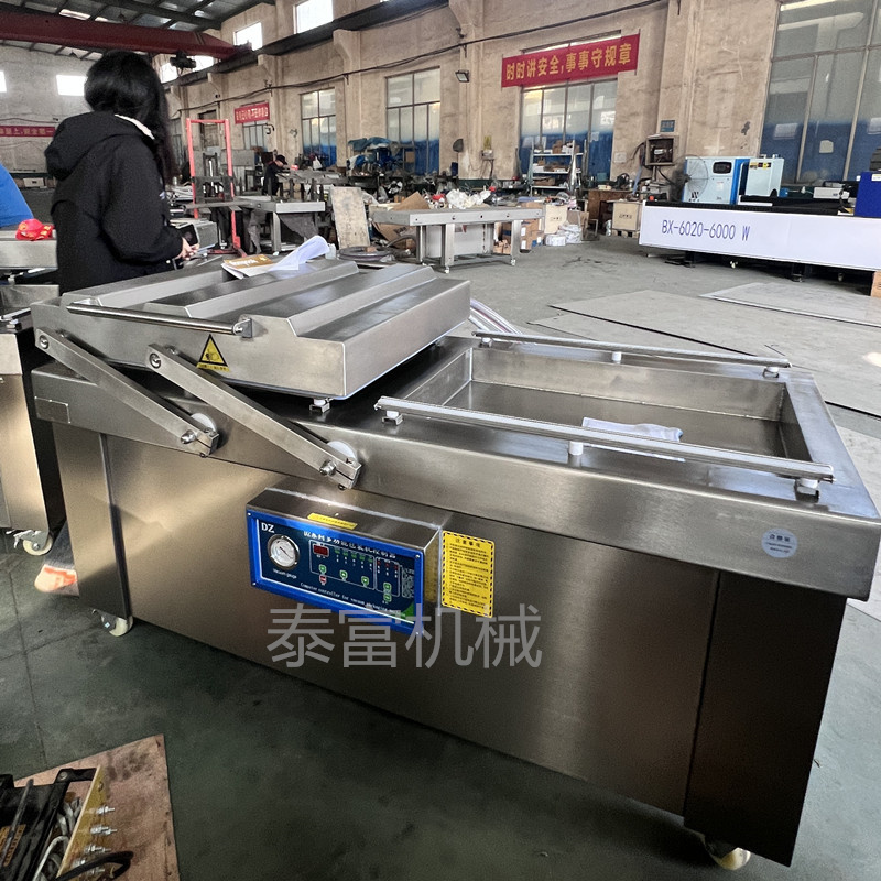 食品真空包装机对香肠、肉制品、饼干等食品进行真空包装。经过包装后的食品可以防止霉变,保质、保鲜而延长产品的储存期限,只需按动真空盖可自动完成抽真空、封口。