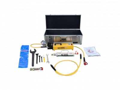 6、 把注脂枪筒后端的快旋公接头跟SDB-1/3超高压手动泵油管前的快旋母接头连接好。